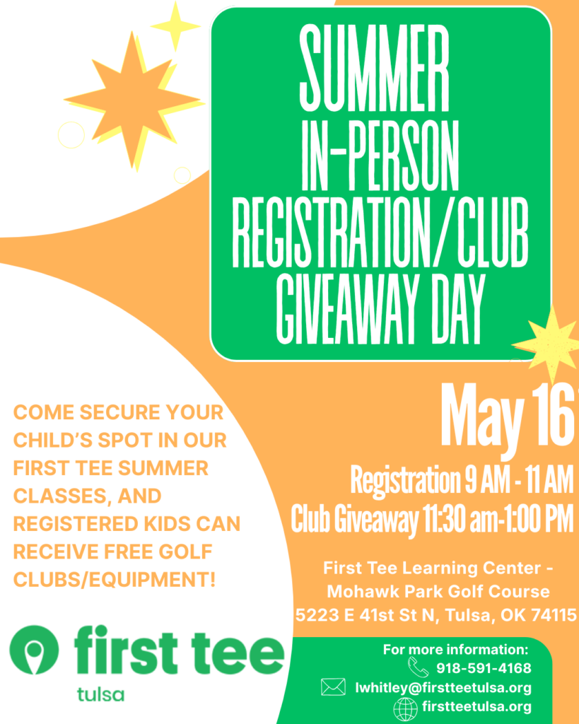 Mohawk Park Golf Course: 5223 E 41st St N, Tulsa, OK 74115 (class will meet at the practice putting green by the First Tee building)